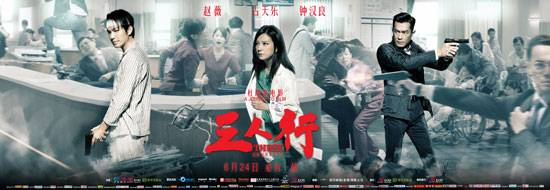 电影《三人行》由杜琪峯执导,杜琪峯、游乃海监制,游乃海、刘浩良、麦天枢编剧,赵薇、古天乐、钟汉良等主演。影片即将于6月24日在全国上映。