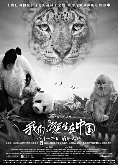 其实自然电影的概念并非陆川原创,迪士尼已经用这个全新的类型打造了八部电影,《黑猩猩》里的收养和家庭化的表述,《猴子王国》里一个出生底层的猴子的奋斗和夺权,《生灵之翼》里的爱情和交配以及《地球》中史诗级别的迁徙过程,都是在真实之余展现了更多的故事性和戏剧性。这一次的《我们诞生在中国》也不例外,故事以中国独有的四川大熊猫、雪豹、川金丝猴三个国宝级野生动物家庭为主线,以交叉剪辑的方式讲述了它们各自在神秘的自然保护区出生、成长的历程,其中不乏成长的欢乐,也有催人泪下的亲情和感动。陆川曾在采访中透露,“我们用了六只雪豹的素材来编一个雪豹的故事,像那个叫淘淘的金丝猴,也有很多小猴子贡献了它们的表演。”仅从这一点,就足以将它和纪录电影区分开来。