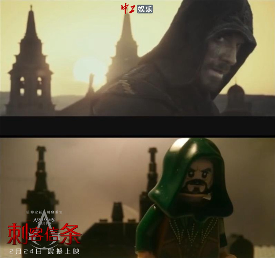 乐高版预告片在画面、音乐、节奏上完完全全地复制了《刺客信条》预告片,但将所有的场景、动作、人物都用乐高积木的方式呈现,出人意料的达到了喜感的效果。于是,在这款预告中我们能看到积木堆成的中世纪教堂,盘旋的呆萌老鹰,以及标志性乐高形象的法鲨和玛丽昂。更绝的是,乐高版预告连animus穿越、极限跑酷、甚至信仰之跃都一一还原,看着行动不便、短手短脚的乐高攀爬跑跳,蠢萌十足让人捧腹,尤其与原版预告一对比更显喜感。在2月24日(本周五)影片上映前,先感受一下搞笑蠢萌的刺客,再去影院见识帅气十足、霸气无比的刺客,将是一个不错的方式。