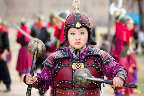 《刘海戏金蟾》里的于贞一角延续了臧洪娜以往最擅长的戏路,虎头虎脑、大大咧咧的人物感觉,在臧洪娜的演绎下萌感与喜感兼具,在整部剧中起到了活跃气氛的作用,成为不可或缺的重要存在。据悉,臧洪娜所饰演的于贞是萝蔓国的大将军,虽然武功高强,却有勇无谋,用“四肢发达,头脑简单”来形容这个人物再适合不过。就目前曝光的剧照来看,臧洪娜手持两个大铁锤一副气势凌人、胜券在握的样子,可以想象到的是后续一定会有让人捧腹的喜剧反转,臧洪娜自己则笑称于贞是女版的李逵。