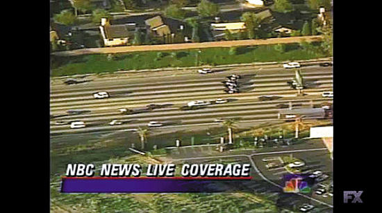 辛普森有殴打前妻的前科,具备杀人动机,于是,警方推定辛普森涉嫌谋杀,决定立即逮捕他。就在辛普森律师准备陪他去警察局时,他却突然驾车逃跑,随后出现了电视史上戏剧性的一幕:正在直播的NBA总决赛被掐断,改为现场直播在洛杉矶公路上演的几十辆警车对辛普森的飞车追逐。最后,走投无路的辛普森开车回到家中接受逮捕。