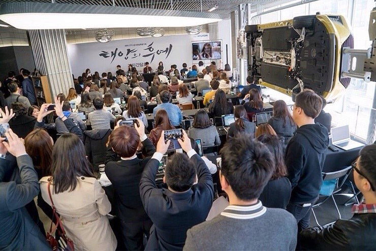 韩剧《太阳的后裔》举办制作发布会,主演宋仲基、宋慧乔、金智媛、晋九、SHINee成员温流现身发布会现场,为新剧宣传造势。
