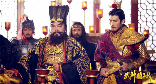 而剧中吕布的造型则堪称时尚界的灾难。其头冠上摇晃的小红球俨然就是来搞笑的。而锦衣华服,明媚紫色底配上深紫、粉红大花……如此娇娆的服饰真让人好奇一介武将能Hold得住么,以至于有观众惊呼,“吕布一出场,我以为看到的是西门庆!”