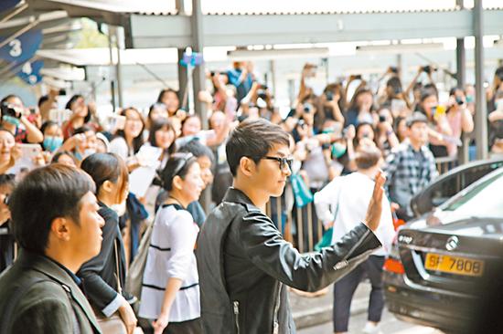 韩剧《太阳的后裔》在港掀起热潮,加上昨天是公众假期,吸引400名粉丝来接机。宋慧乔和宋仲基乘坐中午12点45分的飞机抵港,航班比原定时间迟了近半小时才抵达,“双宋”直到下午1点多才经特别通道走出机场。宋慧乔打头阵现身,戴墨镜的她穿格子短裙秀腿,但全程低头,完全没有望向传媒,仅经过粉丝旁时伸一伸手打招呼后,便极速上车。