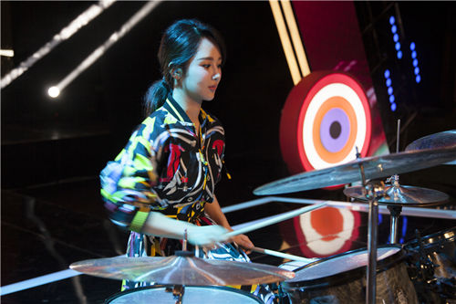 杨紫《欢乐颂》发布会秀架子鼓 帅气青春逼人