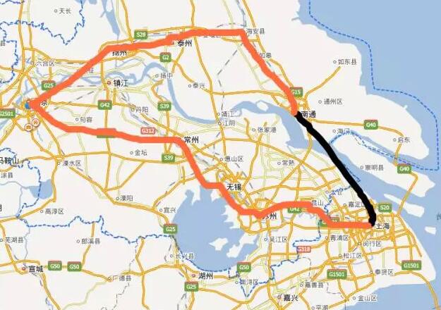 开车或坐大巴可以从黑色路线时长不到2小时。橙色是火车线路,7小时49分的路程,去上海真的是出远门。