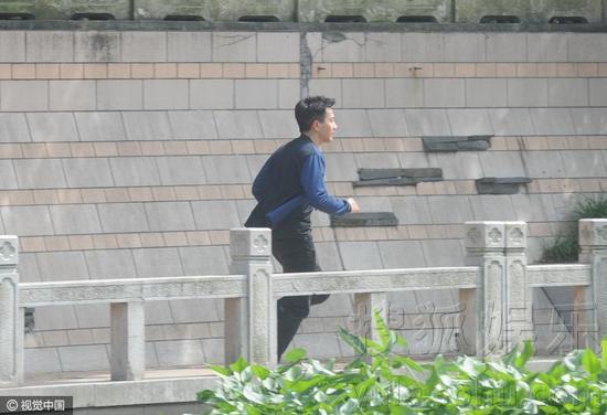 刘恺威与蒋欣合作拍戏 河边追逐深情拥抱