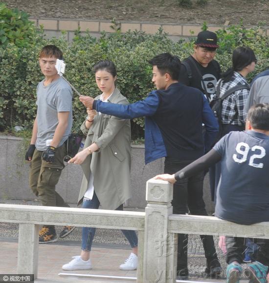 刘恺威与蒋欣合作拍戏 河边追逐深情拥抱