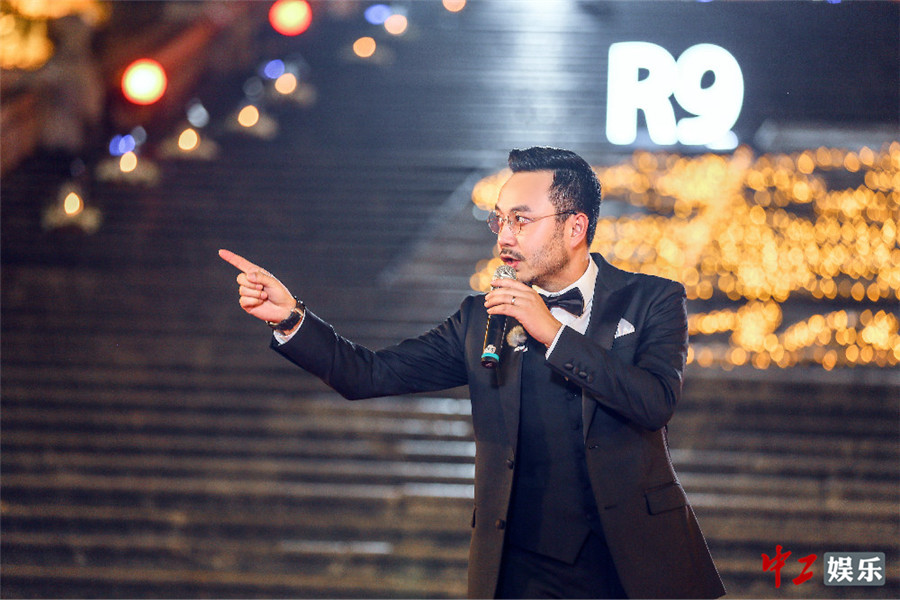 胡歌为品牌活动站台 菱纹灰蓝色西装表情僵硬(组图)