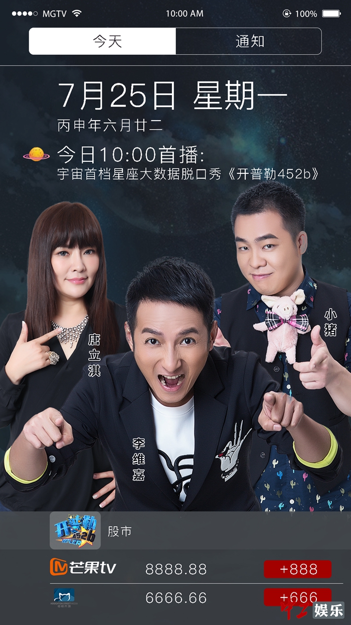 中工娱乐7月25日报道 千呼万唤始出来的首档大数据星座脱口秀节目《开普勒452b》终于在芒果tv上线。首期节目中邀请到了十二星座的网红嘉宾,主持人维嘉携手星座专家唐立淇现场为大家解星盘。
