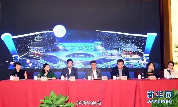 【2016年中央电视台中秋晚会将在西安举办】8月26日,2016年中央电视台中秋晚会新闻通气会在北京举行。通气会上宣布,晚会将于9月15日20点至22点在西安的大唐芙蓉园内举行,届时CCTV-1、CCTV-4将并机向海内外观众现场直播。新华社记者金良快摄