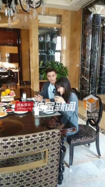 贾乃亮与王子文桌边用餐,王子文甜笑。