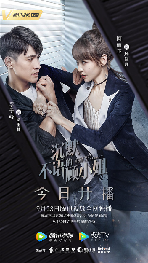 由企鹅影视、广东南方领航影视、超娱影业联合出品,孙浩执导,阿丽亚、李子峰、蔡卓音、叶筱玮领衔主演的悬疑爱情偶像剧《沉默不语的顾小姐》(以下简称“《顾小姐》”)将于今日在腾讯视频正式开播。9月23日起每周三四五晚8点更新2集,会员提前看一周。从日前片方曝光的预告片来看,在这个悬疑年观众对于这部区别于纯男性化的悬疑偶像剧还是比较买单的。