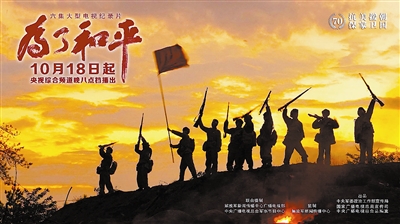 本报讯(记者刘桂芳)为纪念中国人民志愿军抗美援朝出国作战70周年,由中央军委政治工作部宣传局、国家广播电视总局宣传司、中央广播电视总台总编室出品,解放军新闻传播中心监制,解放军新闻传播中心广播电视部、中央广播电视总台军事节目中心联合摄制的大型电视纪录片《为了和平》,18日起在中央电视台综合频道晚8点档黄金时段播出。