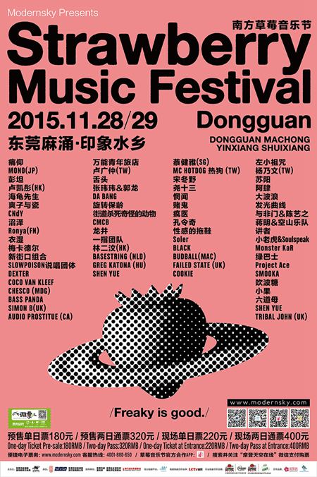 搜狐娱乐讯 11月28日,2015南方草莓音乐节将在距广州45公里的东莞麻涌·印象水乡拉开帷幕!现场将设置草莓舞台、爱舞台、嘻哈舞台、南方舞台、RELEASE电子舞台,邀请到65组海内外及港台地区音乐人参演,将创造华南地区迄今为止最具规模的户外音乐节。