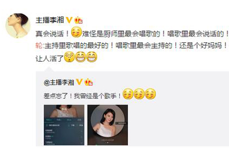 11月24日晚,李湘在微博晒出一份歌单,写道:“差点忘了!我曾经是个歌手!。”随后,林依轮转发微博,评价道:“主持里歌唱的最好的!唱歌里最会主持的!还是个好妈妈!你要闹哪样?还让不让人活了。”……