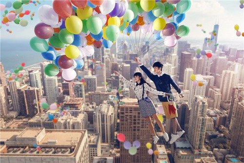 整组写真突出了青少年爱幻想、爱冒险的特质,五色斑斓的气球,飞翔于天际的p2组合,给人眼前一亮的感觉,让人们看到了零零后一代朝气蓬勃的精神面貌。从而也让我们看到了p2组合青春、时尚、动感的完美定位。