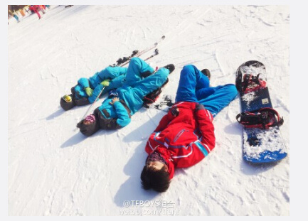 王源全副武装去滑雪 戴两层帽子仅露眼睛(图)
