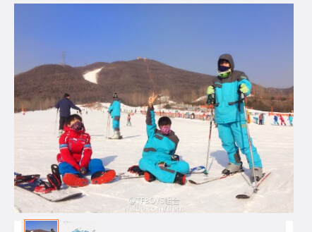 赵文卓携妻女法国滑雪 娇妻张丹露携女儿出镜(组图)