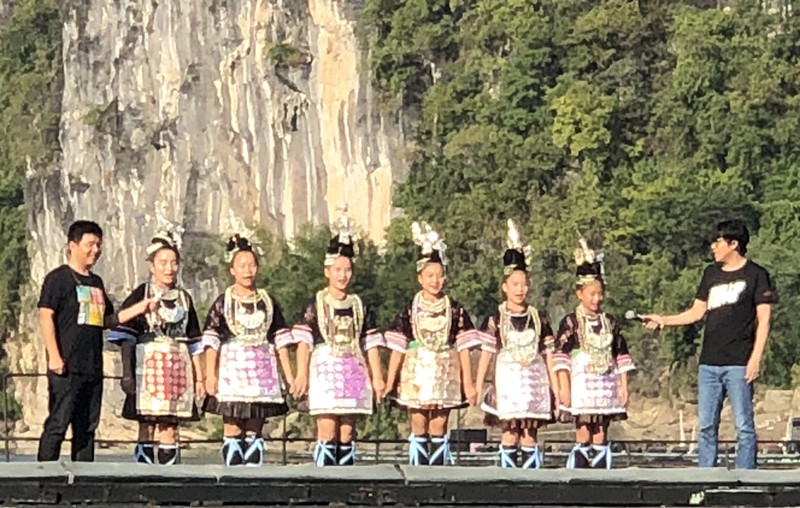 此外,水木年华还与儿童代表学唱当地民歌,感受广西特色民俗文化,水木年华成员卢庚戌、缪杰幽默的说话风格,热情的互动,让现场观众纷纷表示:“水木年华太有亲和力了”、“终于看了现场版的水木年华的歌”。