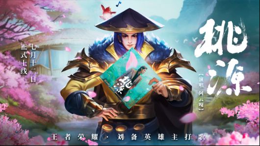 《桃源》作为三分奇兵新版本的首支英雄主打歌,选择为兼具游侠首领与益城之主双重身份的英雄刘备而作。在纷扰乱世中,面对自由与责任之间的抉择,刘备坦然放下过往,转身挑起重任,守护苍生。这首为刘备量身打造的曲目,透过阿云嘎极具穿透力的歌喉,尽展英雄刘备历经沧桑不惧将来的旷达胸怀。