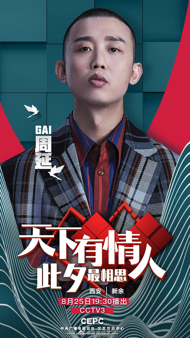 8月25日,GAI周延登上央视《天下有情人此夕最相思》2020七夕特别节目,演唱了歌曲《华夏》。