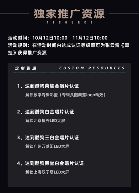 “跨界歌手”张云雷的音乐风格再度升级,用更加纯粹真挚的作品回馈每一位乐迷,在全新EP《牵挂》中,哪一首打动你的心?目前,《牵挂》销量仍在持续上涨中,而当专辑达成相应认证等级时,还能为张云雷解锁【数字专辑彩蛋】【北京搜秀LED大屏】【广州万菱汇LED大屏】【上海双子塔LED大屏】等独家推广资源!除此之外,10月13日中午20:00-21:00 ,张云雷将重磅空降酷狗歌手粉丝说&新专辑《牵挂》评论区高能翻牌,一起到评论区留下想对张云雷说的话吧!