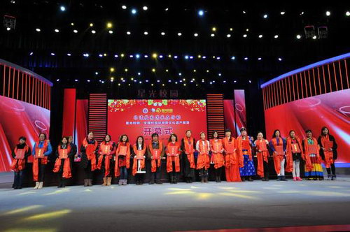 在开幕式上,为表彰李玉芙、石维坚、单秀荣等著名艺术家德艺双馨的品格以及对校园艺术发展无私的奉献,顾秀莲副委员长、张天保副部长等与会领导为他们颁发了“星光校园•全国校园艺术爱心大使”奖杯和证书,并为在“非物质文化遗产校园传承研究”课题实践工作中,取得突出成绩的优秀学校、指导老师代表颁发了获奖证书。