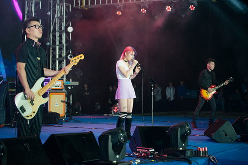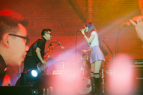 小爱与花儿乐队是由前花儿乐队成员鼓手王文博、贝斯手郭阳与90后混血美女小爱重组的新花儿乐队,神秘新主唱小爱凭借高挑的身材、亮丽的外形和甜美的声音成为媒体关注的焦点,人气突长被网友们称为“曙光女神”。当晚,乐队一首《曙光》将大家带入摇滚热浪,没想到演出过半时下起大雨,瓢泼大雨并没有浇灭歌迷们的热情。贝司手郭阳在发烧喉咙痛的情况下,卖力演出。观众也似乎感受到了他们的热情,台上台下一起感受冰火两重天的摇滚震撼,真正体会了“幸福尽在这里”。最后,随着歌迷们有节奏的高喊声,小爱与花儿乐队感谢歌迷的支持,更感谢很多从外地专程赶来的歌迷。