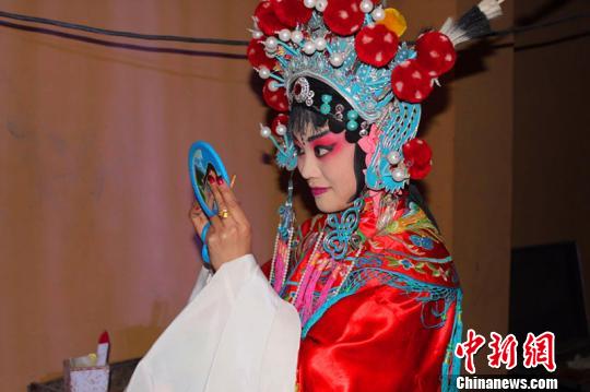四股弦演员在化妆。 徐彪 摄