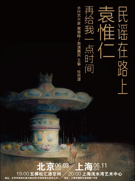 “我的音乐故事离不开你们,但不知道你的故事里会不会有我”,作为台湾民歌餐厅的活跃歌者,袁惟仁穿越了一代人的青春岁月,他写红了无数的音乐,却也遗憾于没有更多的时间可以安静地和乐迷面对面分享音乐背后爱情故事的初始模样,于是在他的首次个人演唱会中,这一切遗憾将得以补足。在演唱会上,不仅仅可以听袁惟仁讲音乐故事,还可以听到民谣乐迷们通过众筹的方式分享的自己的爱情故事。主办方也希望借由与“开始众筹”平台的合作,以“文化包裹”的形式,唤醒深埋在大家内心的几近遗忘的人文情怀,为乐迷提供一个可以从一开始就参与融入进来的温暖环境,同时找到与自己的情怀点相近的“同类”,大家透过“民谣在路上-袁惟仁-再给我一点时间 演唱会”相聚,与音乐人共同做一次最真诚最直率的沟通,同时也让更多业内相关公司对“众筹”这种即将成为未来演唱会主流模式的手段加深认知,探索及突破传统的演唱会框架化的陈旧的筹办模式。最值得一提的是,为了这场演唱会,主办方力邀当今艺术界著名年轻艺术家黄赛峰跨界合作,黄赛峰的作品以从不同角度阐述“时间”主题见长,这与演唱会的概念完美契合,除了主视觉,黄赛峰更精心打造出美轮美奂的实体EP,并制作限量明信片,以音乐画册的形式回馈给参与众筹的乐迷,将音乐故事完美融合于画作。