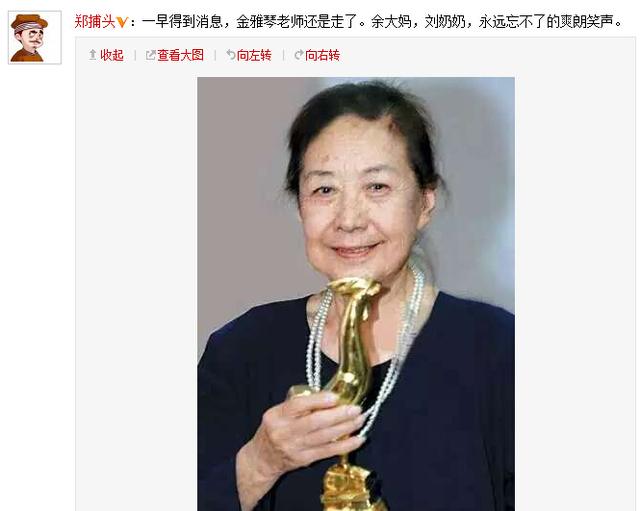 6月23日上午,根据微博认证为“著有《我爱·我家》一书;媒体人”的@郑捕头 和@我爱我家全球影迷会等微博消息,表演艺术家金雅琴在凌晨3点左右去世,享年91岁。