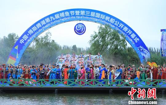 中国?博斯腾湖第九届捕鱼节暨第三届新疆博斯腾湖国际帆船公开赛9日在博斯腾湖大河口(西海渔村)景区开幕,让各地游客在大饱眼福、口福的同时,感受悠久的“博斯腾”文化。 年磊 摄