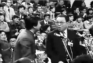 1987年姜昆和唐杰忠表演相声《虎口脱险》。