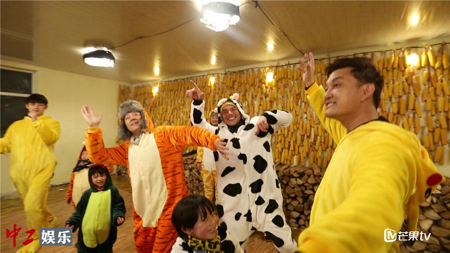 中工娱乐12月9日报道 近日,风靡娱乐圈的“假人挑战”风刮到了芒果TV《爸爸去哪儿第四季》拍摄现场,萌娃奶爸在冰天雪地里穿上动物家居服,上演了一出最萌“假人挑战”。