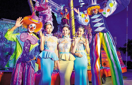 中华小姐化身童话王国公主 乘坐花车夜游长隆