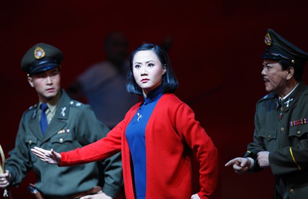 昨天下午,和平区《纪念中国共产党成立95周年戏曲音乐会》在津湾大剧院举行,图为著名歌唱家李瑛演唱歌曲《父老乡亲》。