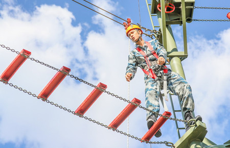 高空单杠”作为8位空军新兵心品训练的考核项目之一,主要考察新兵们的胆量、信心与情绪控制能力。面对挑战,新兵们屏气凝神,为自己暗自鼓劲。