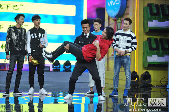 众所周知,陈坤算是“小白”白举纲的伯乐,在快乐男声比赛期间,就对白举纲青睐有加,在赛后更是有诸多提携。而在节目录制现场,白举纲在游戏过程中,更是拉着左立、张阳阳和主持人一起模仿陈坤的标准特色——高低眉,惟妙惟肖的神情也让现场粉丝尖叫不已。