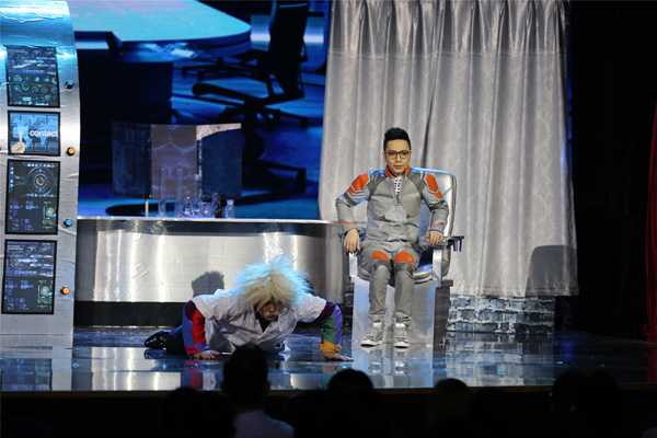 自上期香港喜剧“教父”詹瑞文遗憾离场后,使得台上只剩下五组嘉宾。本周日的节目将迎来首位踢馆嘉宾李鸣宇。作为新生代的喜剧人,高颜值的李鸣宇能编能演,可谓全能人才。他是著名相声表演艺术家冯巩的徒弟,在2009年创办北京“鸣乐汇”先锋相声团并担任团长,多次参演各大电视台春节联欢晚会以及海外演出,有着丰富的喜剧表演经验。此次,他带来一部十分具有科技与现代感的作品,讲述了一个穿越时空的男人,爱上了那个时代女子的故事,简直就是搞笑科幻版的《步步惊心》。