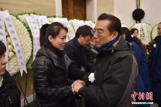 18日上午,著名艺术家、词作家、剧作家阎肃追悼会在北京八宝山殡仪馆举办。当天,朱军、李双江、朱迅等文化、艺术等各界人士及阎肃亲友前来送阎肃最后一程。前来悼念的民众站满灵堂,现场气氛庄严肃穆。数百位吊唁者排队缓步进入吊唁厅,向阎肃老师深深地鞠躬。
