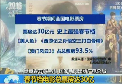 单片方面,《美人鱼》上映7天收近16亿票房。另外两部国产3D大片——《西游记之孙悟空三打白骨精》和《澳门风云3》,也均达到了7亿票房线。
