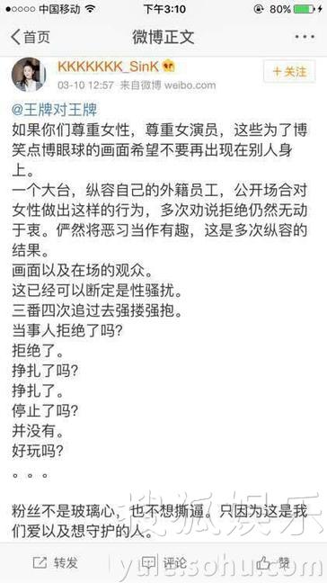 粉丝很气愤写了一长篇讨伐文。节目组目前还没有回应。