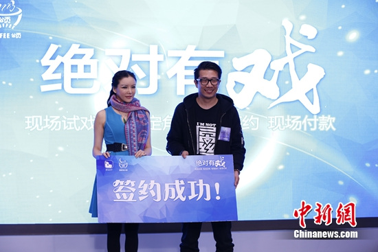 中新网北京3月27日电(记者 张曦) 27日,全球首档VR直播选角真人秀《绝对有戏》在北京举行,演员彭丹、歌手李进、主持人彭宇以及多位影视公司负责人参与选拔,40余位演员与剧组当场签约成功。