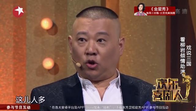 在《喜剧人》舞台上一个很有意思的看点,那就是很多喜剧人喜欢和舞台一旁的主持人进行互动,无论是吴秀波还是郭德纲都不止一次的被调侃,不同的是,郭德纲这一季是坐着的,而吴秀波上一季是站着。坐着当然有坐着的好处,每次镜头扫到他的时候,总会有种莫名而来的喜感。开心麻花在半决赛的时候调侃过他,当时饰演小乔的柳岩主动走到饰演曹操的老郭身边,两人的一段简短的对话成为了《赤壁》这个作品为数不多的亮点。潘长江在决赛也调侃过他,曲隽希把他说成是蛤蟆精,而老郭听到之后脸色是非常的“难看”。