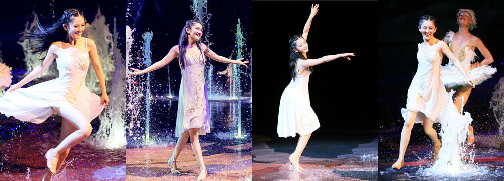 “太阳女神”谢娜舞衣火辣 表演水舞剧走光(组图)