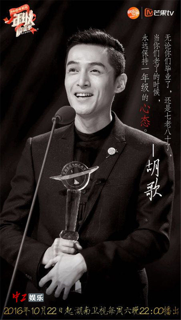 中工娱乐11月27日报道 昨晚湖南卫视《一年级·毕业季》播出第六期,师生们走出课堂学习体验,直击今年10月的金鹰节颁奖台前幕后。此次节目中,上戏大师哥胡歌暖心的赠言,更成为当晚朋友圈流传之金句,保持一年级心态,不管做人演戏,胡歌为《一年级》的学生们和观众们展开了一片赤子之心。