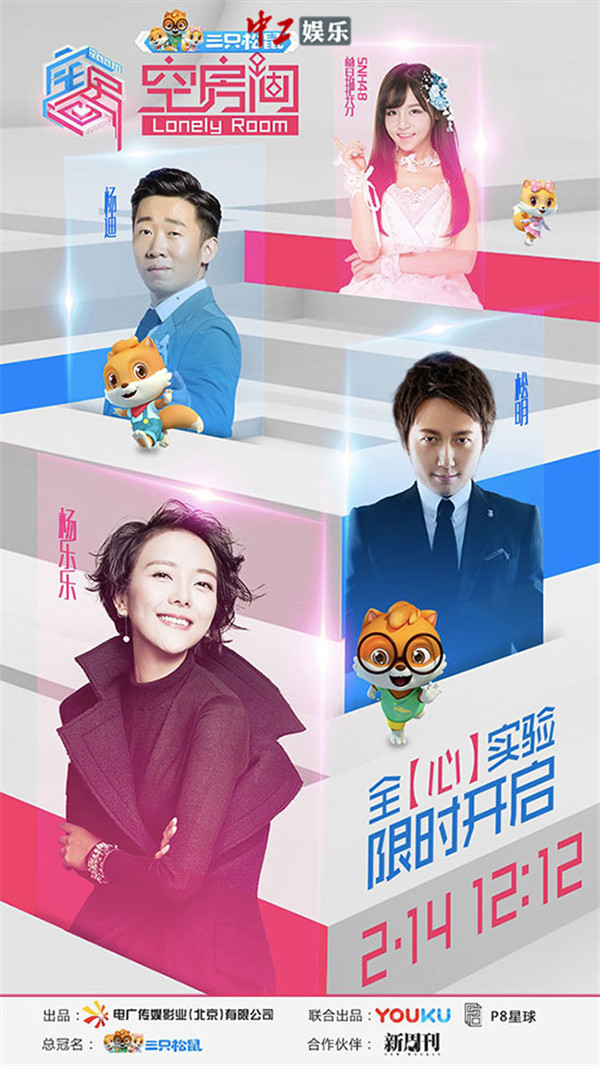 中工娱乐2017年2月10日报道 由电广传媒影业与优酷联手打造的全国首档探索爱情发生类真人秀《空房间》日前联合新周刊等知名媒体启动全球报名,立刻引发网络热议,“10分钟爱上陌生人”为单身汪们在情人节创造颠覆想象的寻爱可能。随着2月14日12:12分节目先导片直播的日益临近,这档“实验型原创真人秀”的神秘面纱也逐渐揭开。今日,节目组正式公布明星观察员阵容,主持人杨乐乐领衔国际知名读心术大师松明、最近人气高涨的“搞怪小可爱”杨迪、偶像团体SNH48成员曾艳芬组成明星观察团,将与网友一起见证真爱发生。