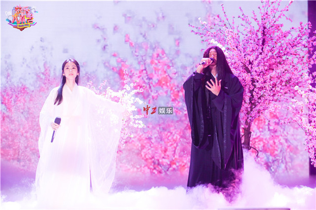 作为本周节目中的一大亮点,杜海涛与张碧晨合唱的一首《凉凉》还未播出,便令观众们翘首以盼。据悉,在当日录制现场,杜海涛头顶黑长直发套cos“夜华”,不料非但男神气质未显,还反倒被台上众人戏称“拖把”,可谓十分尴尬。而经过与张碧晨的一曲对唱之后,海涛却沉醉于歌曲意境中久久不能自拔,俨然是没唱过瘾的节奏。于是,意犹未尽的他当即向张碧晨自荐道:“以后演唱会就找我吧,我有时间。”万万没想到,张碧晨却飞快婉拒,称:“我可能今年不办演唱会了。”就在这时,谢娜接过话头,提醒他办演唱会的还有古巨基,可不等海涛开口,“看戏”许久的何老师便及时补刀,提问基仔:“你缺拖把么?”见此情形,古巨基也玩性正起,笑言要自己可能要暂停演唱会。