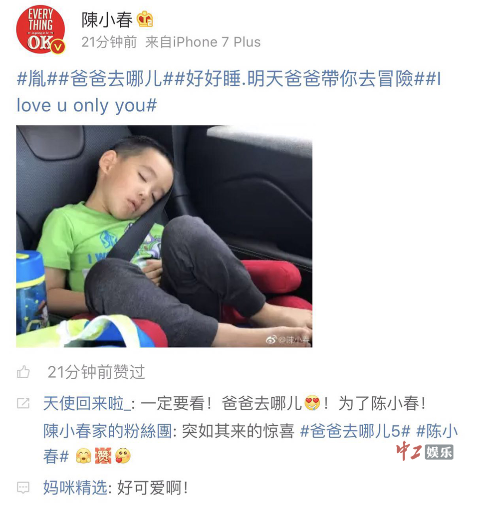 陈小春首秀儿子正脸照 携妻低调现身《爸爸去哪儿5》